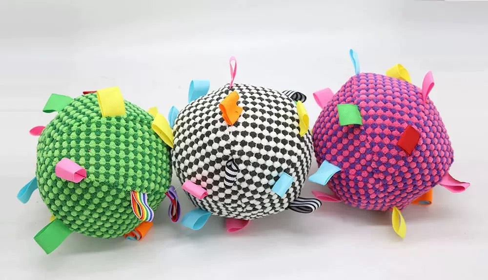 🌈 Nota especial: Las cintas decorativas vienen en colores vivos y variados, por lo que cada pelota es única. Los tonos se mezclan aleatoriamente, creando un diseño alegre y atractivo para tu mascota.