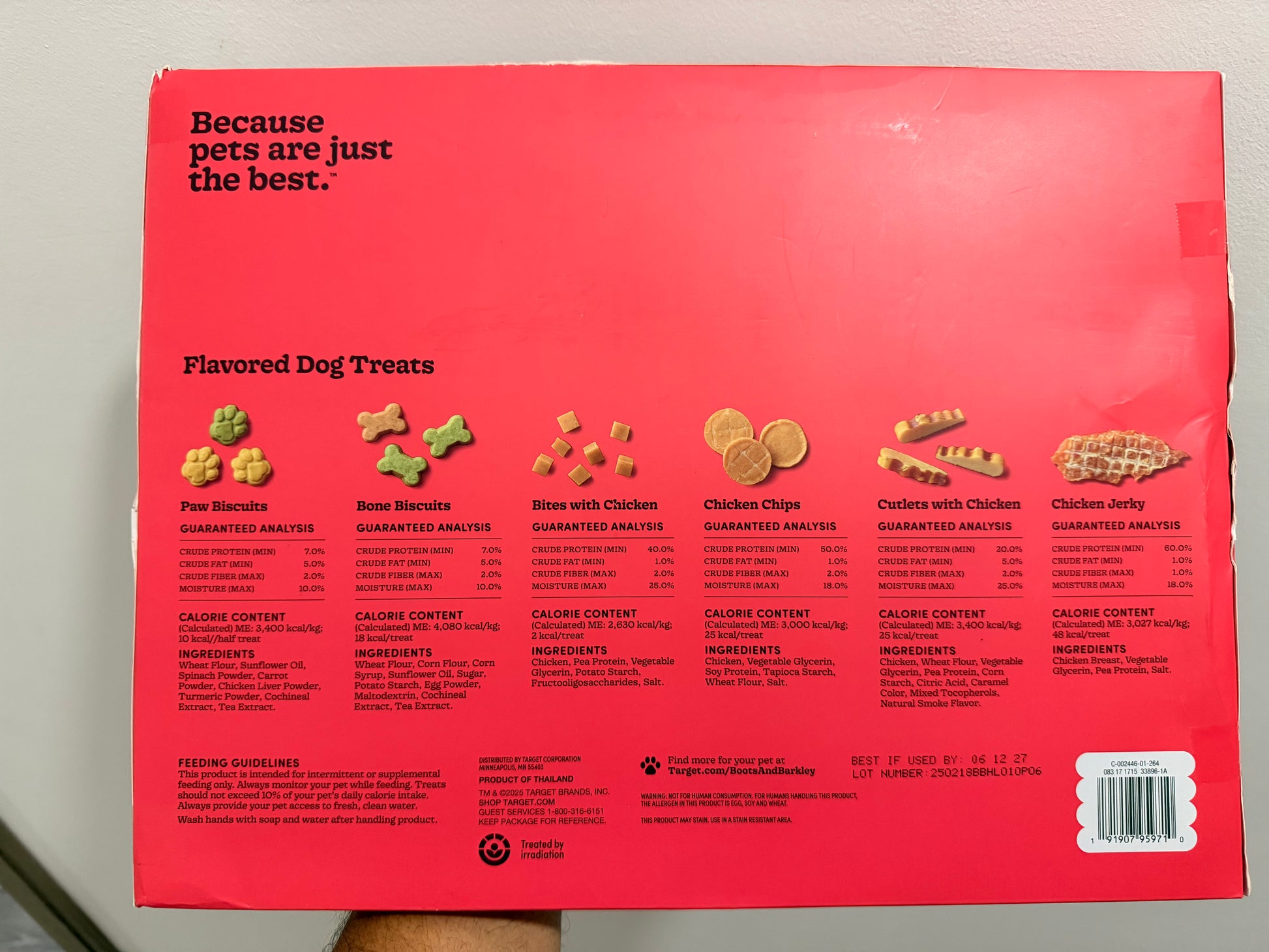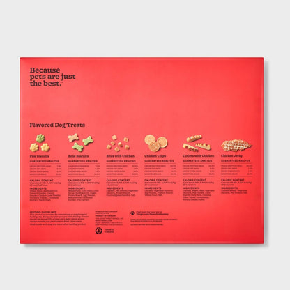 • Bone Biscuits: harina de trigo, harina de maíz, jarabe de maíz, aceite de girasol, azúcar, almidón de papa, huevo en polvo, extracto de cochinilla y té.