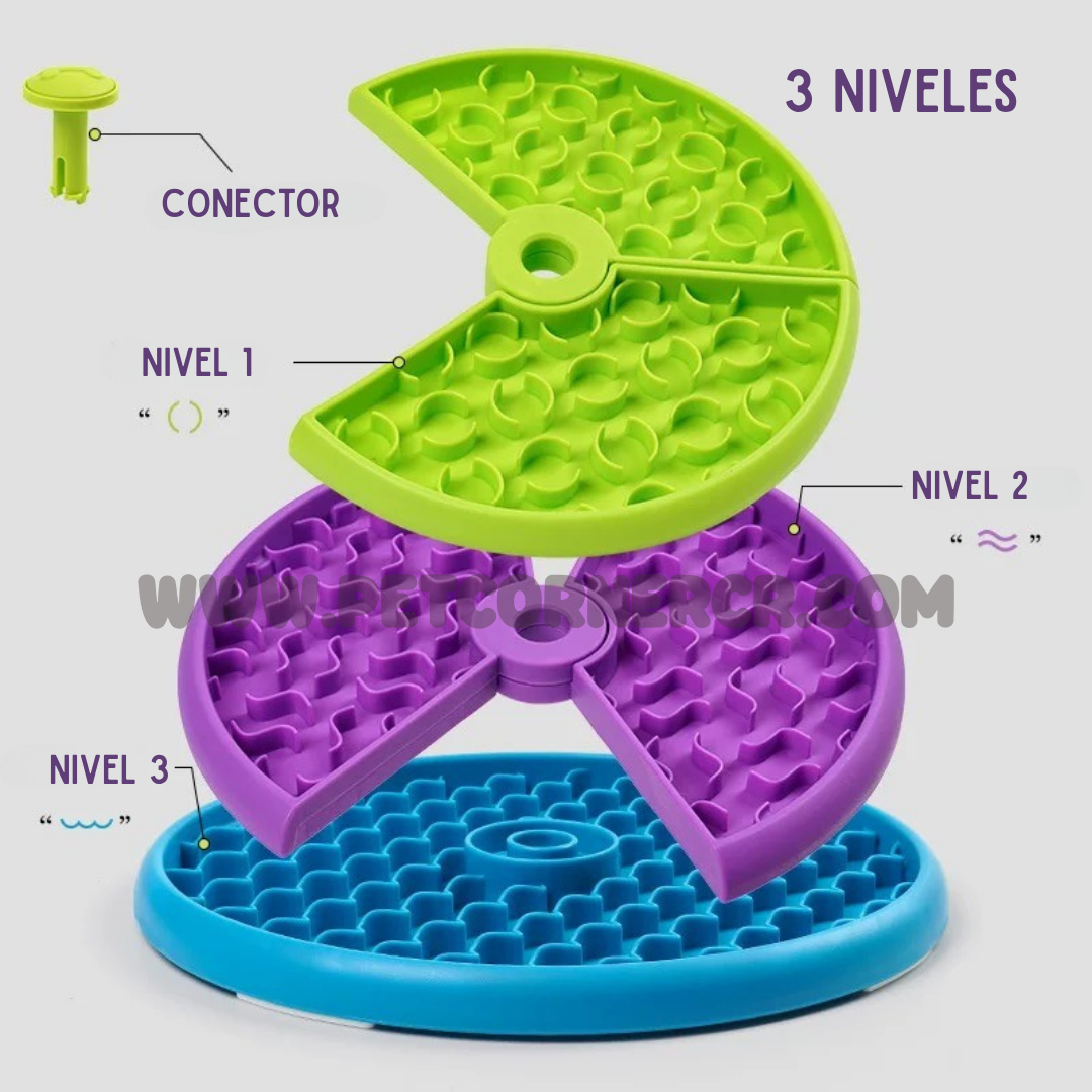 Comedero tipo laberinto que ayuda a tu mascota a comer más despacio, mejorando la digestión y reduciendo la ansiedad. Fabricado en material seguro, duradero y fácil de limpiar.